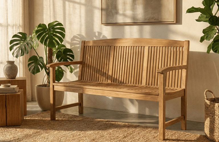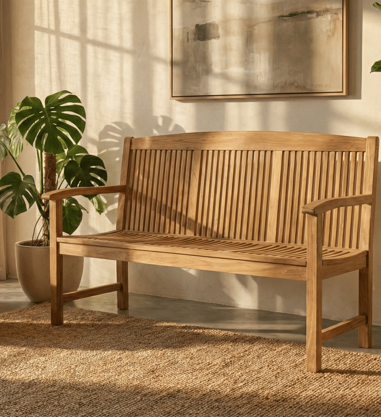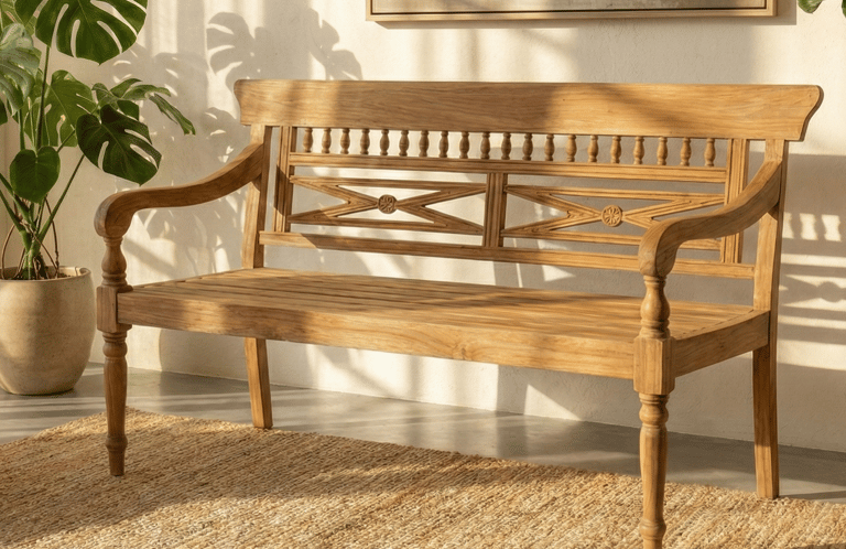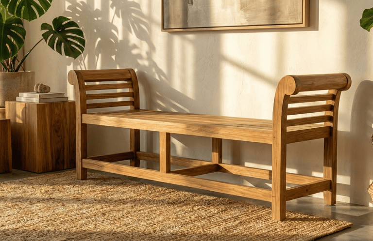 Perfect for dining rooms, entryways, bedrooms, cafés, resorts, or covered outdoor areas, this bench serves as both a practical seating solution and a stylish accent piece. Combining functionality with timeless design, it is built to complement a wide range of interior concepts.