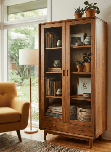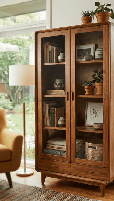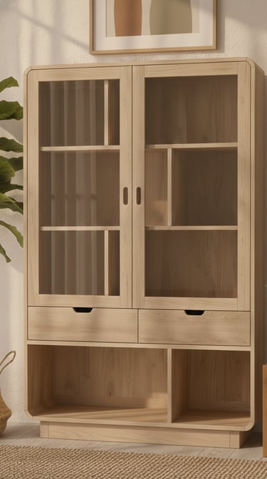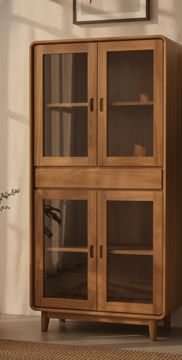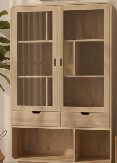 Designed with spacious shelving for displaying décor, collectibles, or tableware, it features finely sanded surfaces and eco-friendly protective finishes that resist moisture and everyday wear. Ideal for homes, offices, showrooms, and hospitality projects, this showcase combines durability, functionality, and timeless style for global markets.