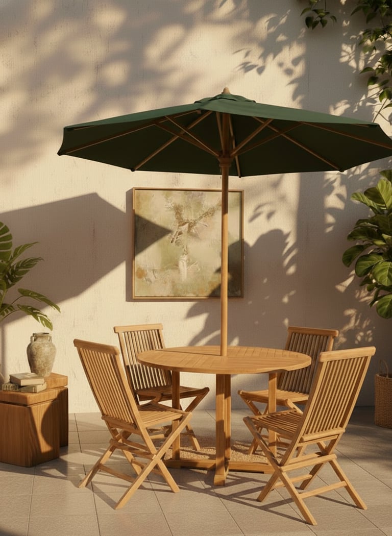 Complemented by a high-quality, durable umbrella with a strong wooden frame, this set offers reliable shade and added outdoor comfort. Ideal for patios, gardens, resorts, cafés, and hospitality projects, our outdoor dining furniture meets international export standards and is carefully inspected to ensure consistent quality, safety, and customer satisfaction worldwide.